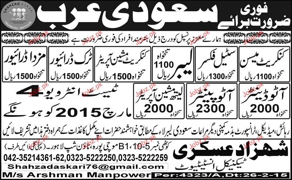 Concrete Mason, Steel Fixers, Labors, Job Opportunity