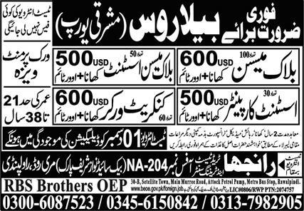 Latest Overseas jobs in Ranjha Trade Test & Training Center in Construction and others can be applied till 1 December 2023 or as per closing date in newspaper ad. Read complete ad online to know how to apply on latest Ranjha Trade Test & Training Center job opportunities. Some jobs in Ranjha Trade Test & Training Center may require skills like Carpentry, Masonry and Kitchen. Salary varies from 170000. Overtime might be allowed. Free transport, medical and accommodation may be available.