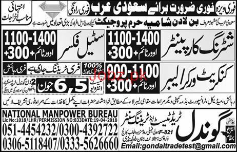 Latest Gondal Trade Test & Training Center Construction Posts Saudi Arabia 2025