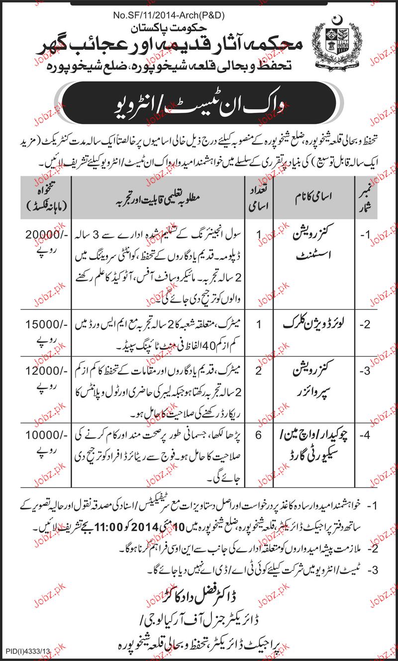 Latest Government Department Admin Clerical Posts Sheikhupura 2025