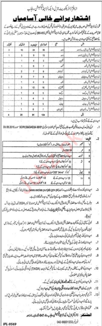 Vacancies in Excise and Taxation Department Advertisement October 2024
