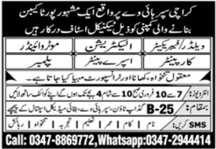 Construction Company invites applications for job positions advertised in daily Jang dated 6 February 2022 for following vacancies in Karachi Sindh Pakistan.