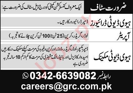 Vacant posts including heavy duty mechanic, operator and htv driver are announced in Construction Company Karachi, karachi Sindh Pakistan as per 22 October 2023 advertisement in daily Express Newspaper. Preferred Education is Intermediate, Middle and Matric etc.