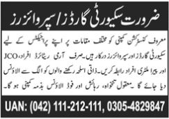 Latest Construction Company Security Posts Lahore 2025