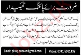 Construction Company jobs advertisement dated about 19 May 2024 in daily Jang Newspaper invites application for the vacant post of piling contractor in Lahore, lahore Punjab Pakistan. Educational qualifications required Intermediate and Matric etc.