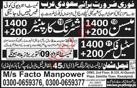 Latest Facto Manpower Overseas Employment Promoters Construction Posts Saudi Arabia 2025