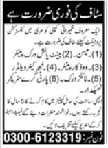 Construction Company jobs advertisement dated about 7 December 2025 in daily Jang Newspaper invites application for the vacant post of thekedar, fabricator welder, painter, mason and wood carpenter in Murree, murree Punjab Pakistan. Candidates with Matric, Primary, Middle and Intermediate etc. educational background will be preferred.