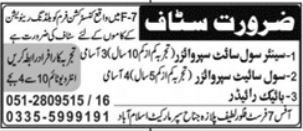 Construction Firm is looking for candidates for following posts as per job advertisement published in daily Jang Newspaper of May 8, 2022 for location Islamabad, islamabad Islamabad Pakistan: