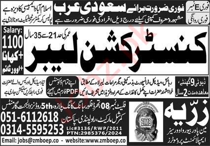 Latest Zaria manpower Bureau Construction Posts Saudi Arabia 2025