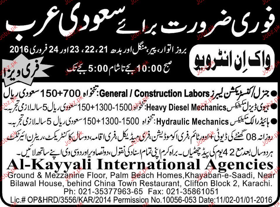 Construction Labors, Diesel Mechanics Job Opportunity