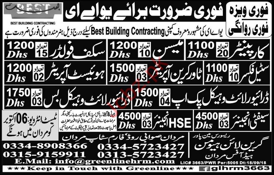 Latest Green Line Human Resources Power Construction Posts UAE 2025