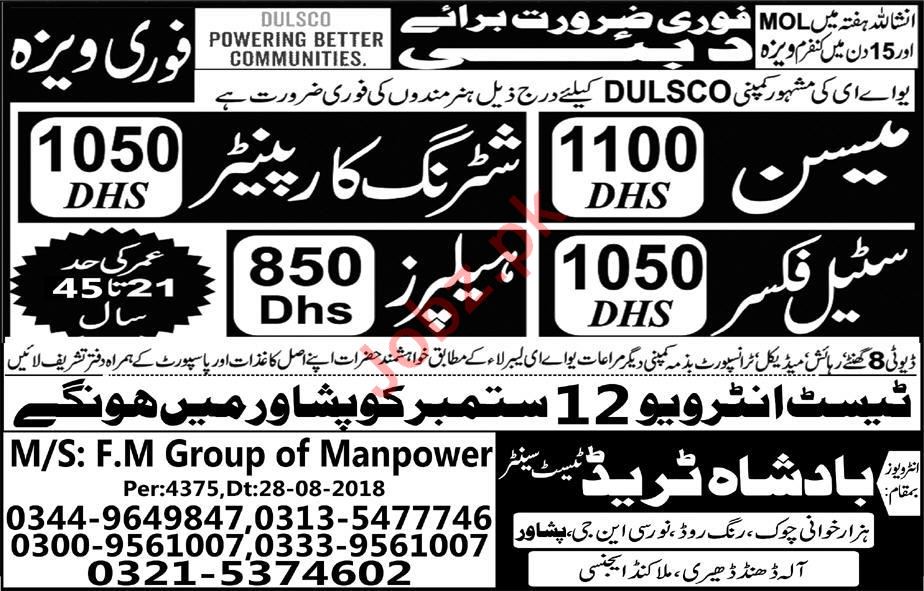 Vacancies in DULSCO Dubai Company Advertisement September 2018