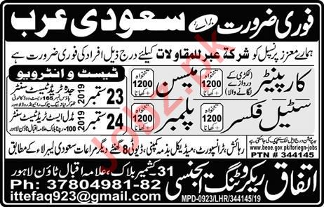 Latest Ittefaq Recruiting Agency Construction Posts Saudi Arabia 2025