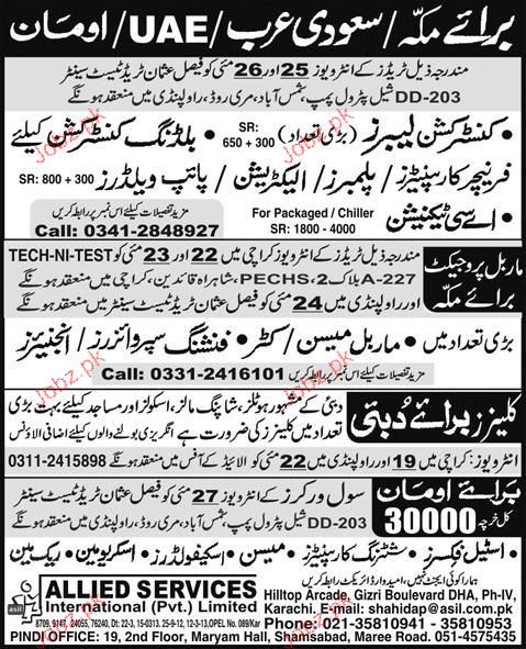 Construction Labors, Pipe Welders, AC Technicians Wanted