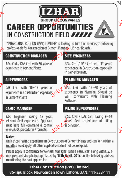 Apply as per details in job advertisement. Login to view further details of how to apply via https://www.jobz.pk online.