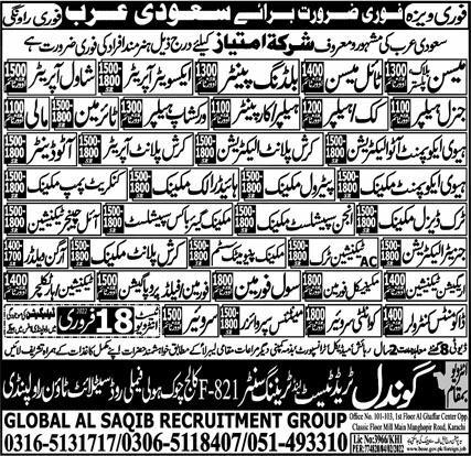 Gondal Trade Test & Training Center is looking for candidates for following posts as per job advertisement published in daily Express Newspaper of February 16, 2022 for location Saudi Arabia Saudi Arabia: