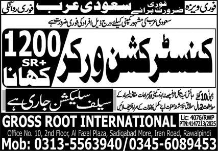 Construction Worker Jobs in Saudi Arabia at Gross Root Intl