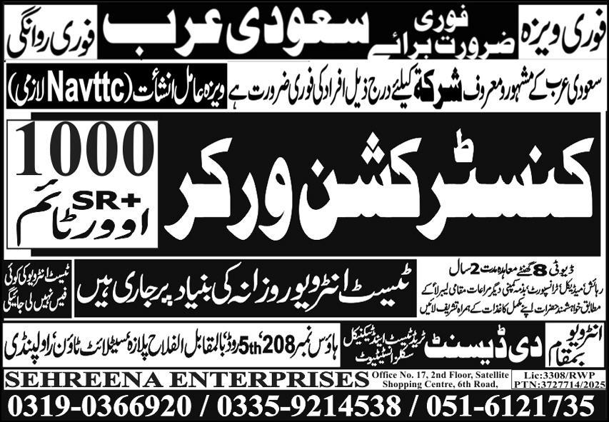 The Descent Trade Test Center is looking for candidates for following posts as per job advertisement published in daily Express Newspaper of September 27, 2025 for location Dammam, madina Saudi Arabia: