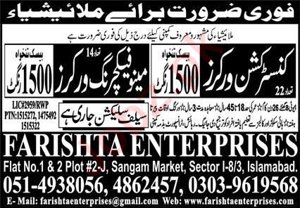 Latest Farishta Enterprises Oversea Employment Promoters Labor Posts Malaysia 2025