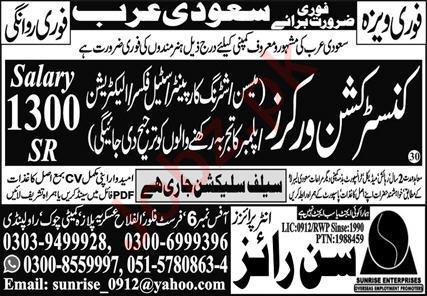 Sunrise Enterprises invites applications for job positions advertised in daily Express dated 8 October 2023 for following vacancies in Makkah, madina Saudi Arabia.