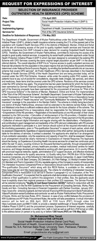 Consultancy Opportunity At Health Department KPK