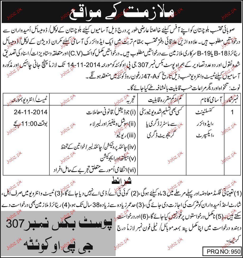 Apply as per details in job advertisement. Login to view further details of how to apply via https://www.jobz.pk online.