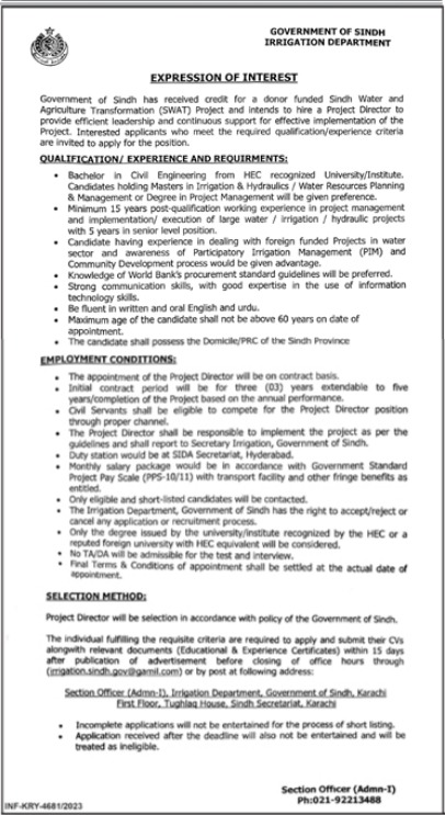 Irrigation Department is looking for candidates for following posts as per job advertisement published in daily Jang Newspaper of December 16, 2023 for location Karachi, karachi Sindh Pakistan: