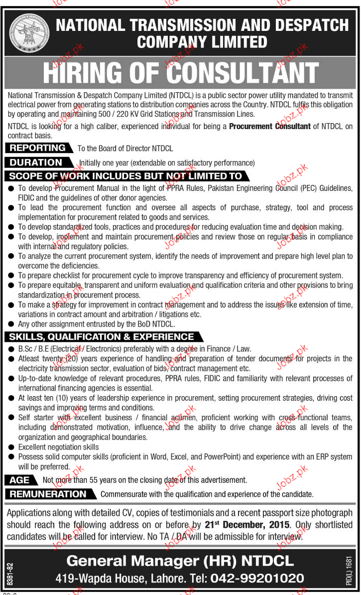 Apply as per details in job advertisement. Login to view further details of how to apply via https://www.jobz.pk online.