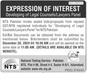 National Testing Service Pakistan NTS is looking for candidates for following posts as per job advertisement published in daily Jang Newspaper of December 4, 2024 for location Islamabad, islamabad Islamabad Pakistan: