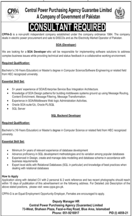Consultant Jobs in Central Power Purchasing Agency Guarantee