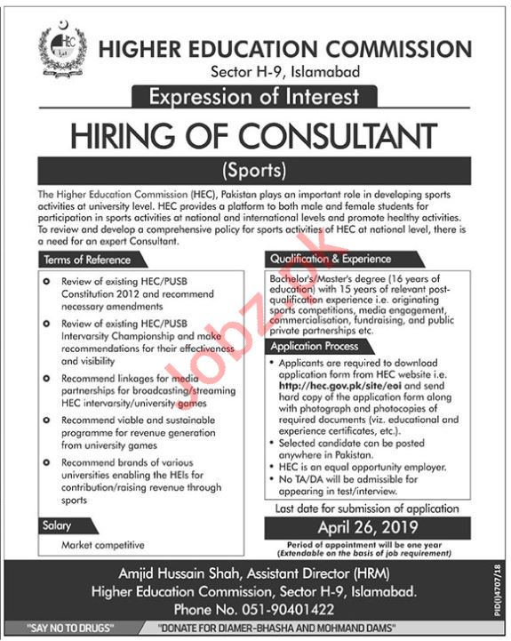 Vacancies in Higher Education Commission HEC Advertisement April 2019