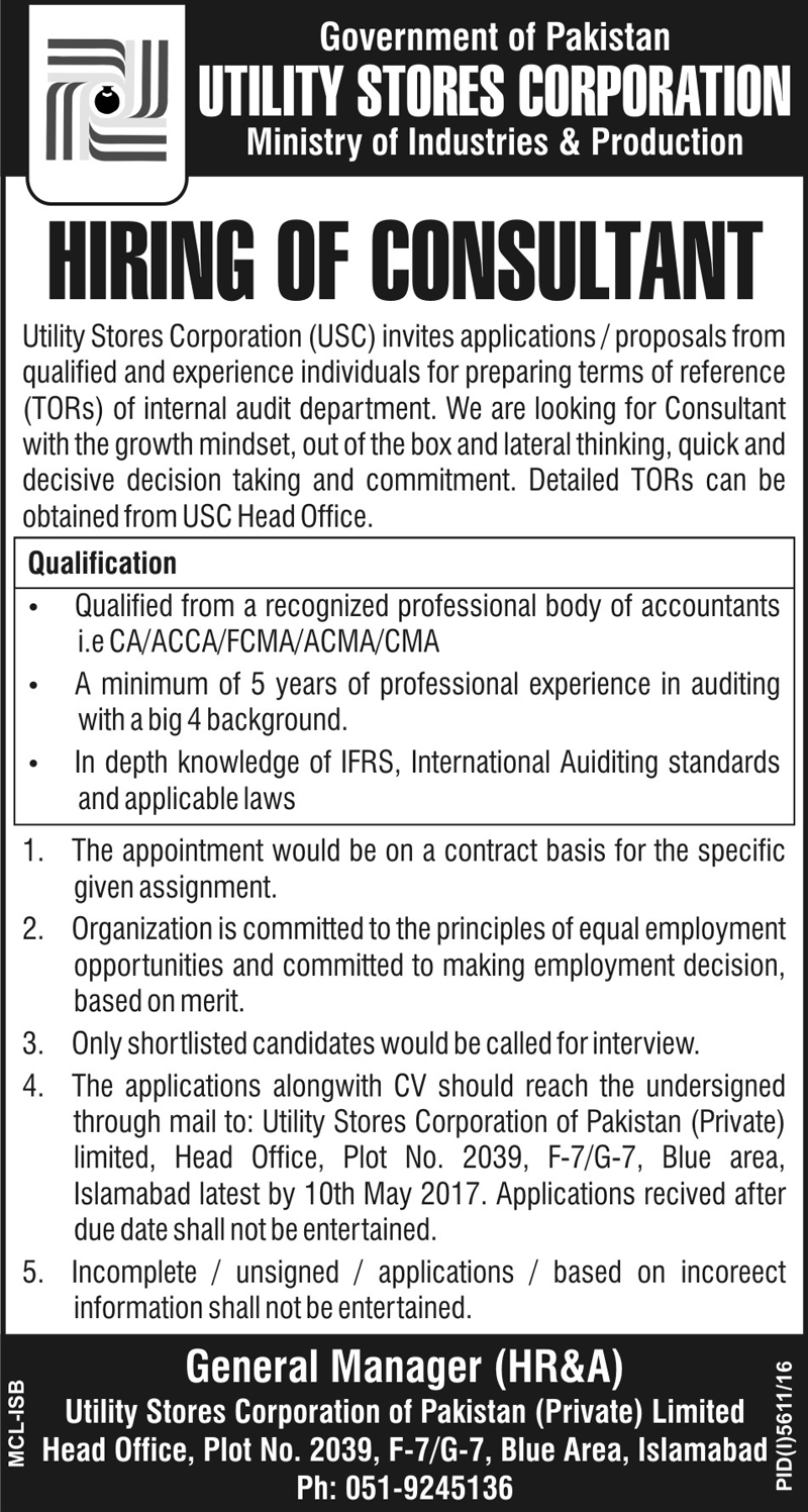 Apply as per details in job advertisement. Login to view further details of how to apply via https://www.jobz.pk online.