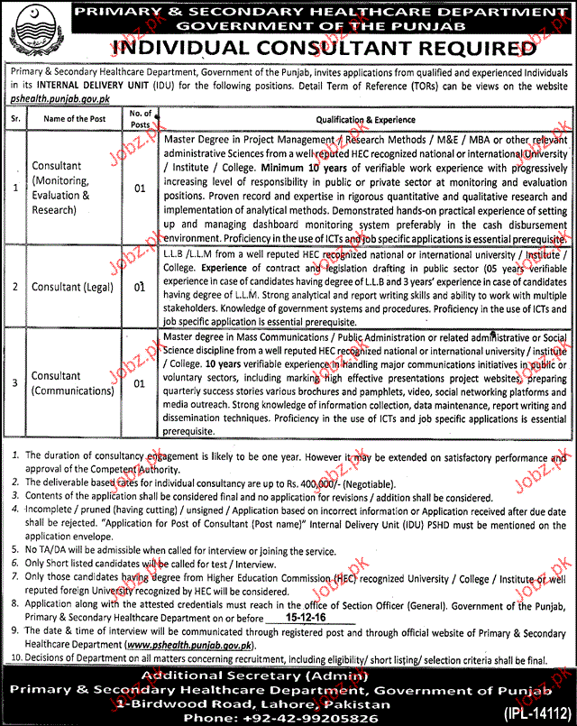 Apply as per details in job advertisement. Login to view further details of how to apply via https://www.jobz.pk online.