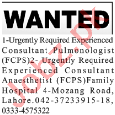 Consultant Pulmonologist & Consultant Anaesthetist Jobs 2020
