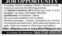 Apply as per details in job advertisement. Login to view further details of how to apply via https://www.jobz.pk online.