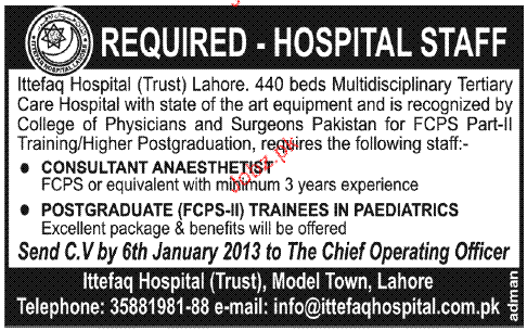 Consultants Anaesthetist And Postgraduate Trainee Wanted