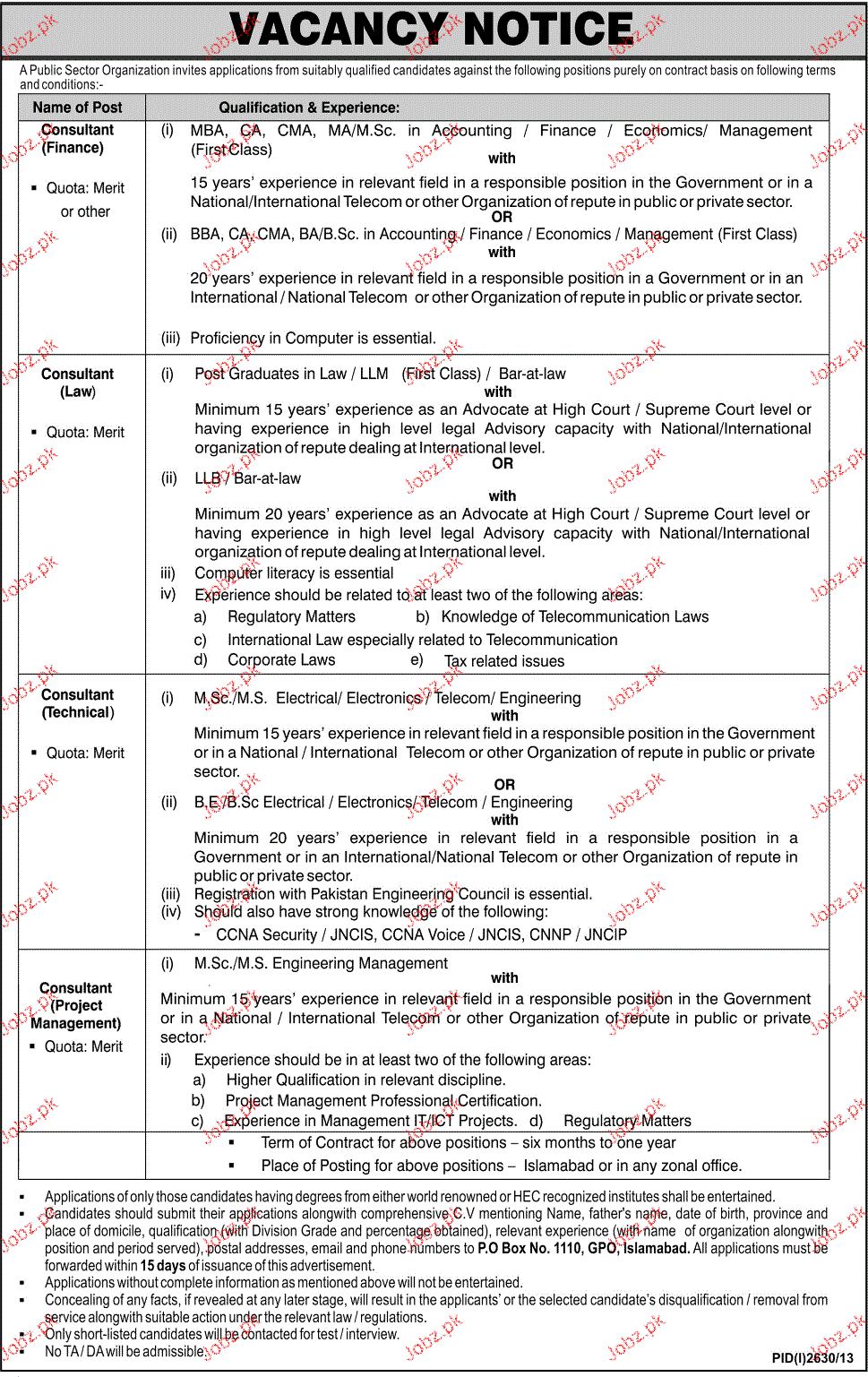 Apply as per details in job advertisement. Login to view further details of how to apply via https://www.jobz.pk online.