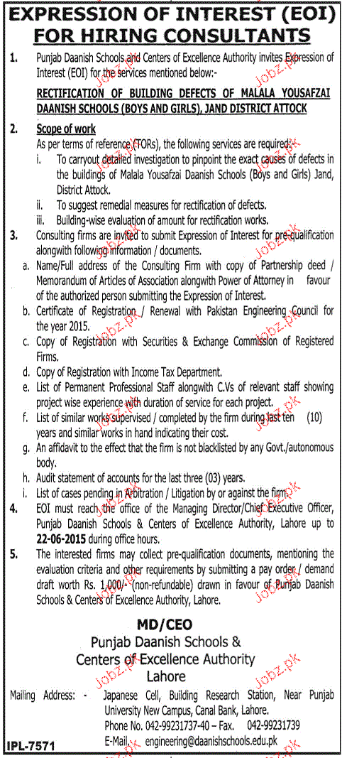 Apply as per details in job advertisement. Login to view further details of how to apply via https://www.jobz.pk online.