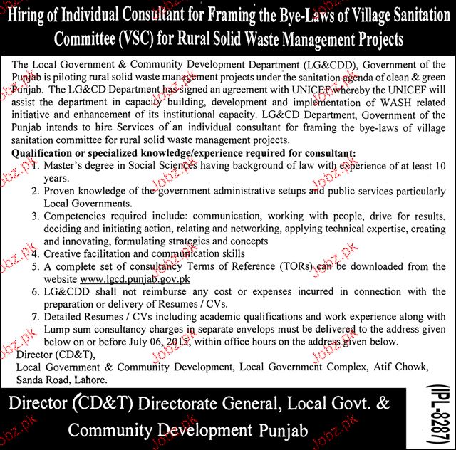 Consultants Job In Local Government Department