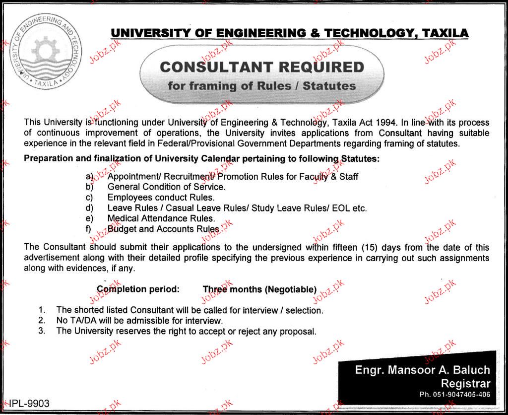 Apply as per details in job advertisement. Login to view further details of how to apply via https://www.jobz.pk online.