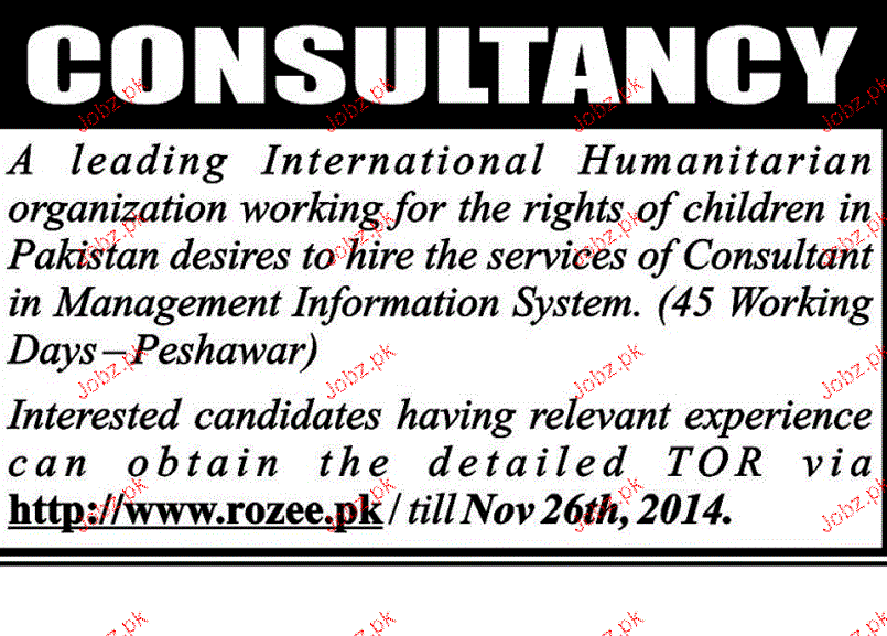 Consultants are required in Leading International Humanitarian Organization in Peshawar.