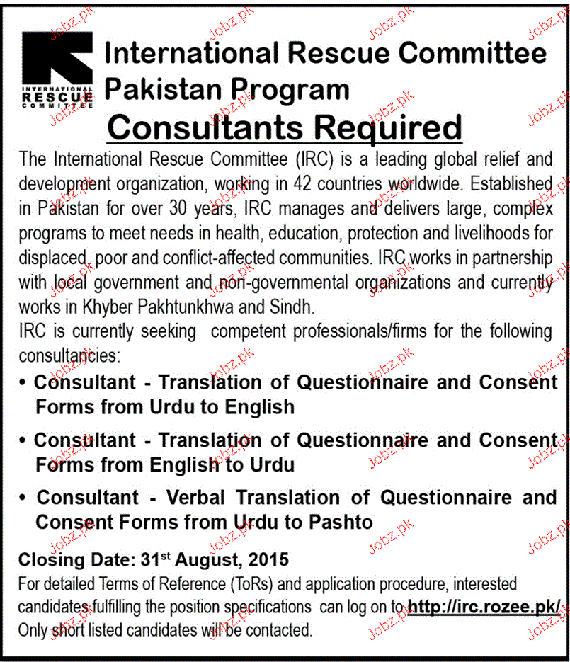 Apply as per details in job advertisement. Login to view further details of how to apply via https://www.jobz.pk online.