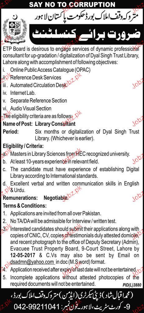 Latest Government Department Consultant Posts Lahore 2025