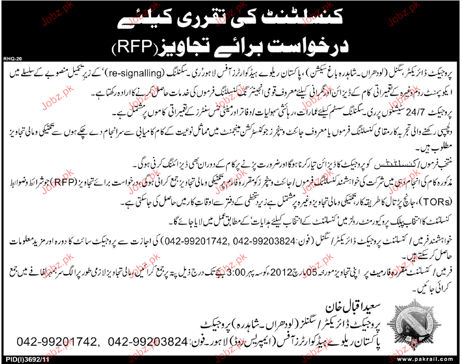 Latest Pakistan Railways Consultant Posts Lahore 2025