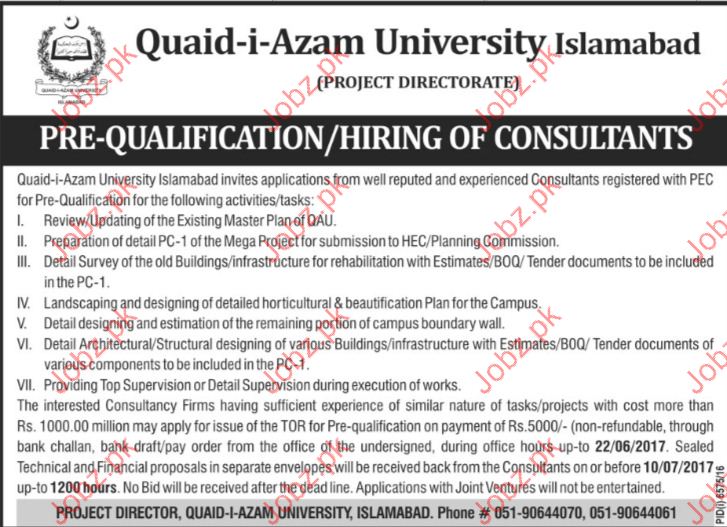 Consultants Jobs In Quaid I Azam University