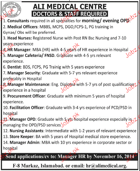Consultants, Medical Officers, Head Nurses Job Opportunity