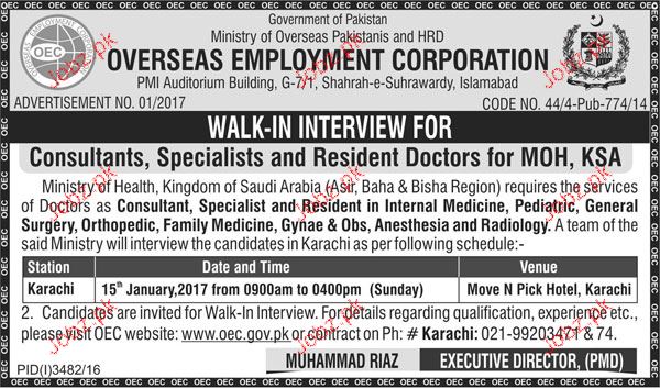 Latest Overseas Employment Corporation OEC Medical Posts Islamabad 2025