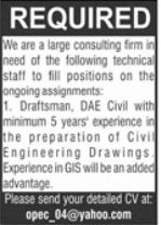 Consulting Firm Lahore Punjab Pakistan invites applications from eligible candidates for the post of Draftsman as per advertisement of February 13, 2022 published in daily Jang Newspaper. Preferred Education is DAE etc.