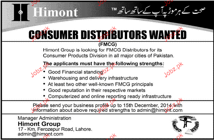 Latest Private Company Distribution Posts Lahore 2025