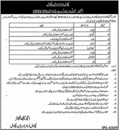 Dams Division jobs advertisement dated about 24 June 2022 in daily Nawaiwaqt Newspaper invites application for the vacant post of guage reader, beldar, plumber, driver, electrician, chowkidar and computer operator in Chakwal, chakwal Punjab Pakistan. Persons with Matric, Intermediate, Middle and Primary etc. education can apply.